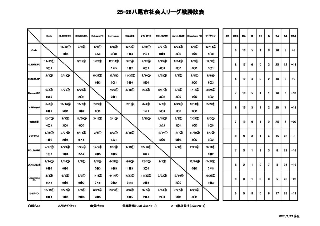 2026.01.21 25-26八尾市社会人リーグ結果&日程