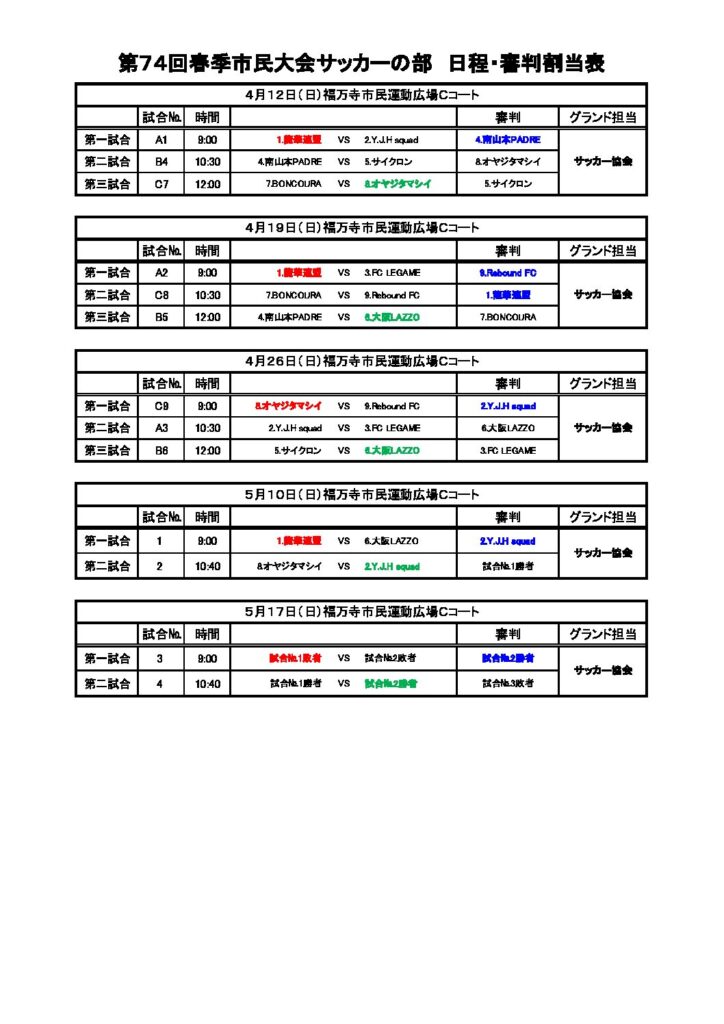 決勝トーナメント進出チームは次回、5/10に試合となります。